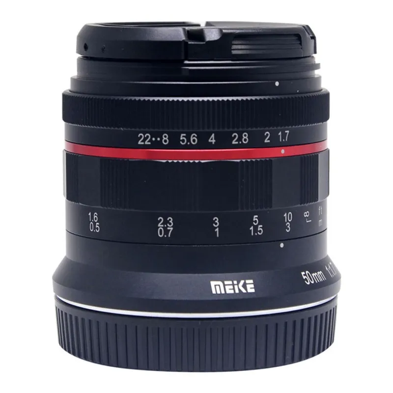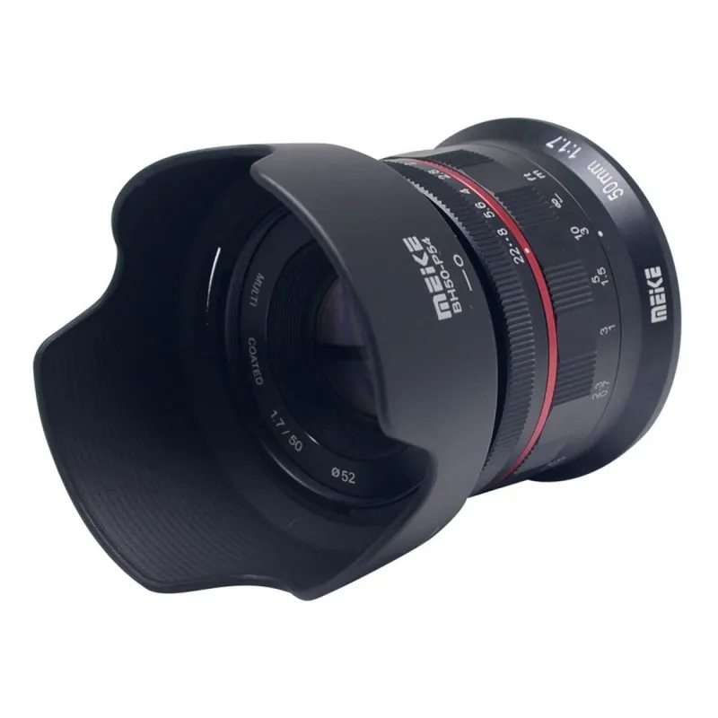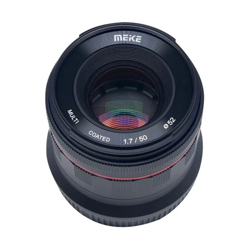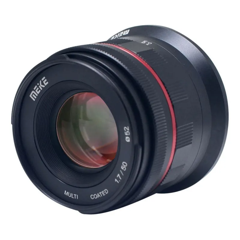 The optics are made up of 6 lens elements divided into 5 groups. Each lens element is treated with a special nano optical multilayer coating that minimises flare and ghosting. The coating also provides excellent contrast and colour reproduction. With its smoothly rotating focus and aperture rings, this 50mm lens is very pleasant and precise to operate. The full metal body makes the Meike MK-50mm lens robust and durable. A lens hood and pouch are included.