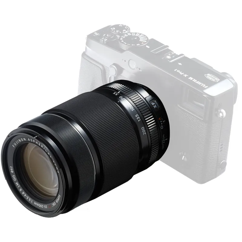 The XF 55-200mm f/3.5-4.8 R LM OIS Lens from Fujifilm is a telephoto zoom lens for the Fujifilm X-series mirrorless cameras. It offers a 35mm focal length equivalency of 84-305mm, providing portrait length to super telephoto capabilities. The minimum focus distance is 3.6' at all focal lengths, enabling telephoto close-ups. With OIS Image Stabilization, it provides up to 4.5 stops of shake correction for sharp imaging in low light situations or when utilizing its longest focal lengths. Two linear motors facilitate high speed auto focus (0.28 seconds) as well as smooth and quiet operation, which is important for stability at long focal lengths, and when shooting video.