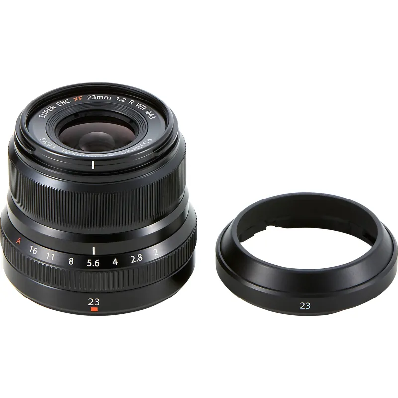 Compact, fast, and weather resistant, this black wide-angle XF 23mm f/2 R WR Lens from Fujifilm is a great choice for those looking for a lightweight and effective imaging kit. Optimized for X-series mirrorless cameras equipped with APS-C sensors, this 23mm lens offers a classic 35mm equivalent perspective, a view much loved by street photographers. The lightweight design and fast f/2 aperture make it a great choice for those looking to stay discreet while shooting. Also, by using two aspherical elements in its optical construction, the lens is able to combat distortions and aberrations for a clear, sharp image. In addition, the 23mm lens uses a Super EBC coating to minimize flare and ghosting.