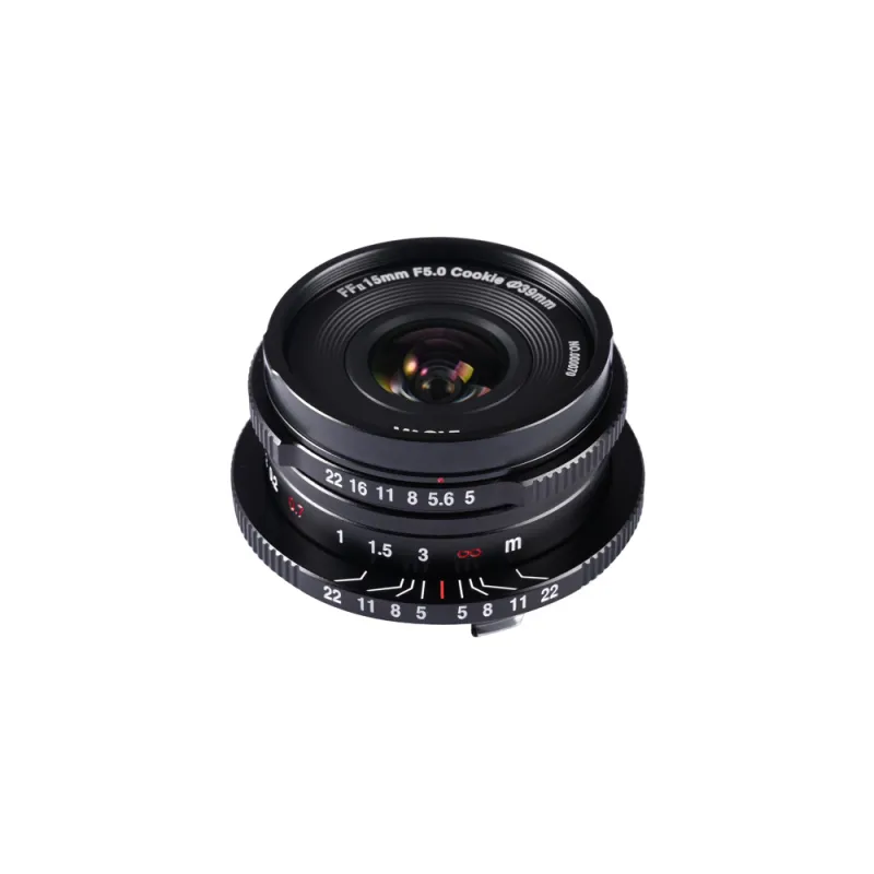 The Laowa 15mm f/5 Cookie FF is a compact pancake-style ultra-wide angle lens designed for full-frame mirrorless cameras. Weighing only 104g, it offers an impressive 110-degree angle of view, making it perfect for street, landscape, and everyday photography.
