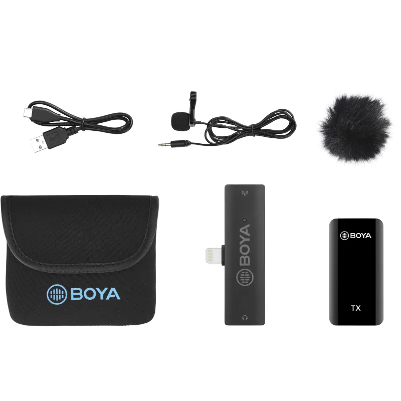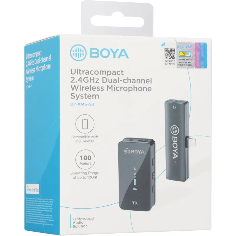 The BOYA BY-XM6-S3 is a 2.4GHz dual-channel wireless microphone system that consists of one transmitter and one receiver. It provides high-quality sound for Apple iOS devices with lightning ports. Ideal for vlogging, content creation, live streaming, recording, etc.
