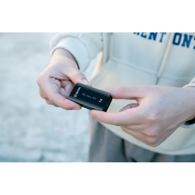 With a vivid and easy-to-read OLED display on transmitter and receiver, users can adjust the signal transmission precisely. And the transmitter is designed with a built-in omnidirectional microphone, so users can clip the transmitter on the collar to pick up sounds, while they can also plug a lavalier microphone into the transmitter's MIC IN input jack for sound capturing. The BY-XM6 series comes with a complete set of accessories in each package, such as a lavalier mic and charging cables, which is a cost-effective choice.