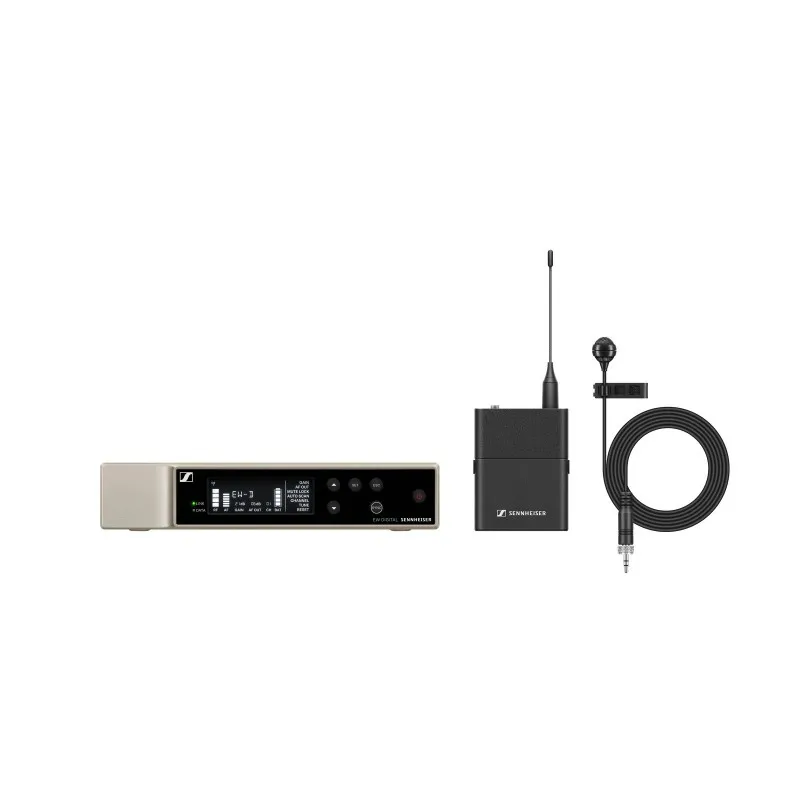 The ew-D ME4 is a wireless lapel microphone designed for presentations in noisy environments. Its cardioid pattern ensures that sound is captured primarily from the speakers mouth, minimizing background noise. The transmitter features a MUTE switch for signal control, while all other settings are managed via the receiver or the Smart Assist app on mobile devices.