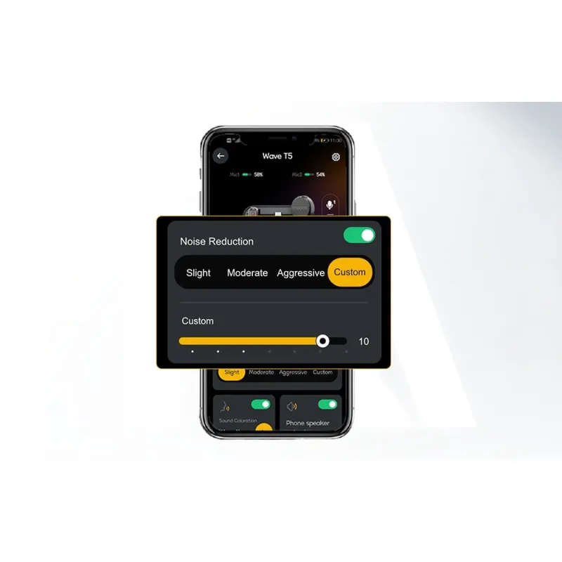 Triukšmo mažinimo sistema veikia trimis intensyvumo režimais (Silpnas, Vidutinis, Agresyvus) ir pritaikomu režimu, kurį galima tiksliai nustatyti MAONO Link programėlėje. Yra 14 reguliavimo lygių, leidžiančių optimaliai sumažinti triukšmą priklausomai nuo aplinkos.