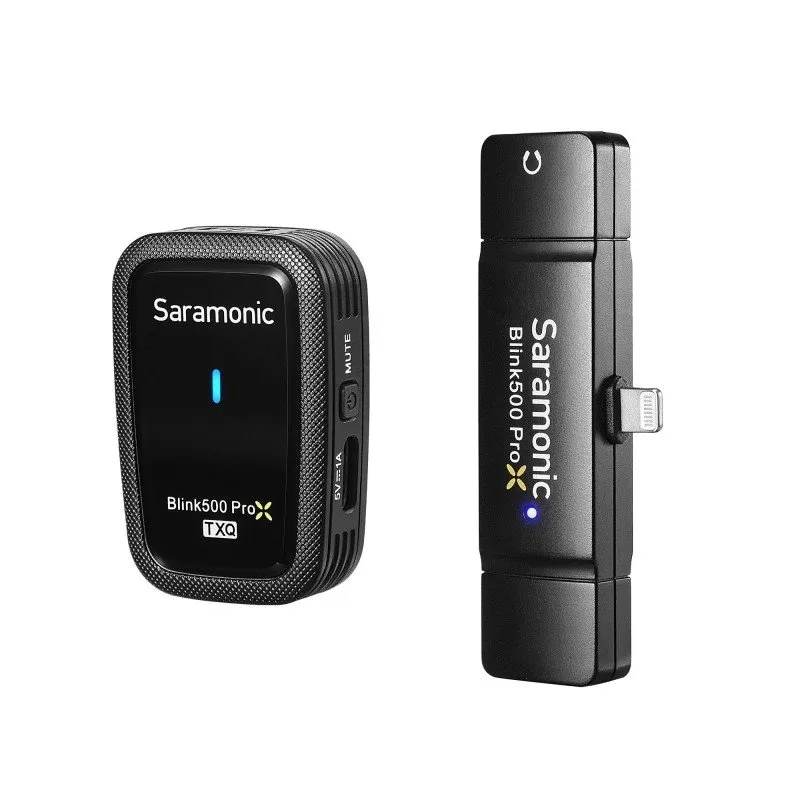 The microports feature very low latency and an excellent signal-to-noise ratio. The kit also comes with a sturdy zippered case. Main Product Features wireless audio transmission kit with 1 receiver and 1 transmitter compatible with Apple devices equipped with Lightning port ideal for use with iPhones and iPads perfect choice for youtubers, vloggers, tiktokers, web creators and journalists records clear and crisp audio with barely audible background noise excellent quality of recorded sound (signal-to-noise ratio - 84 dB, sampling - 48 kHz, frequency response - 20 Hz - 20 KHz) small and ultralight transmitter with built-in microphone and clip for attaching to clothing the transmitter can operate for 6 hours on a single charge up to 100 meters range is a guarantee of even more convenient work receiver powered directly from your iPhone / iPad possibility to connect headphones to the receiver and monitor audio in real time Possibility to power the transmitter via USB-C port (e.g. from a power bank) possibility to record audio in STEREO and MONO modes impressively low latency of 8 ms ideal adjustment to the needs of recording - 6 levels of signal gain ("gain") included case, cable kit and deadcat cover For Apple equipment users Saramonic Blink500 ProX Q3 (RXDi + TX) is a wireless audio transmission kit designed for Apple smartphone and tablet users. The Lightning connector used in the receiver allows easy connection to an iPhone or iPad, even when the device is placed in an armored case!