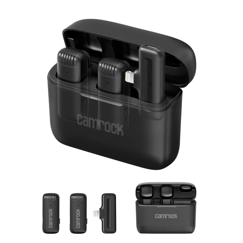 The Camrock Trio MW3 Wireless Audio Transmission Kit is ideal for video creators, vloggers, TikTokers, and journalists seeking reliable audio recording. It is compatible with Apple devices featuring a Lightning port, eliminating the need for extra adapters.