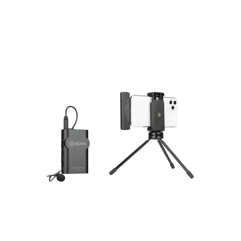 BOYA BY-WM4 PRO-K3 is 2.4GHz wireless microphone system, specially designed for Lightning iOS devices. It comes with a body-pack transmitter (TX4 Pro) and a miniature receiver with a Lightning connector (BY-WM4 PRO RXD), one omnidirectional lavalier microphone.