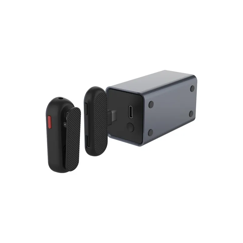 SYNCO for the first time announced a charging case for recording microphone. With this case, charging is as simple as placing the transmitter in the case. The RED light on the transmitter lets you know that it is charging. The receiver side is powered by the phone.