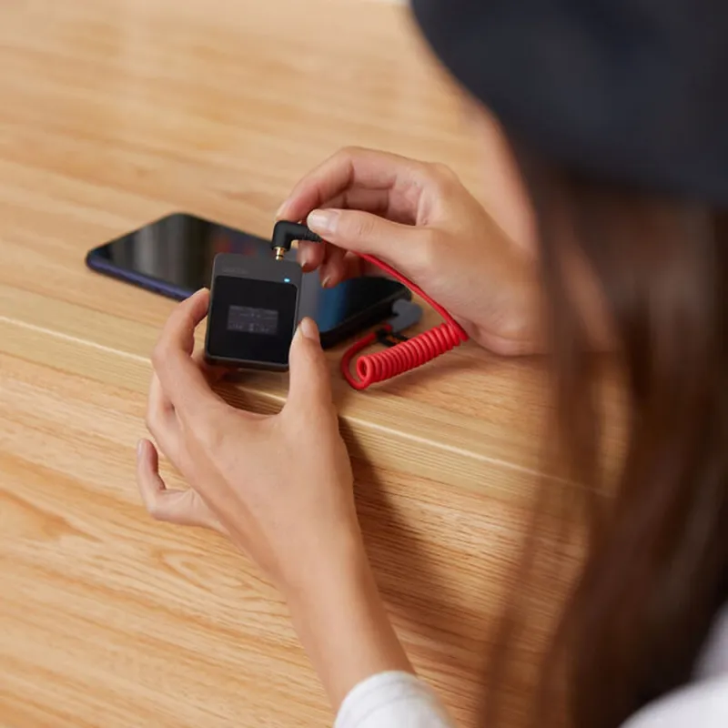 The tiny transmitter weighs less than 30g and features a built-in clip and an omnidirectional microphone, making it simple to attach it to a lapel or shirt for quick and easy, true-wireless audio. The M1 offers a digital frequency-hopping 2.4 GHz bandwidth system with a maximum line-of-sight range of 50m. For a more discreet look, you can use the included lavalier microphone and simply plug the mic's cable into the 3.5mm input port on the transmitter.