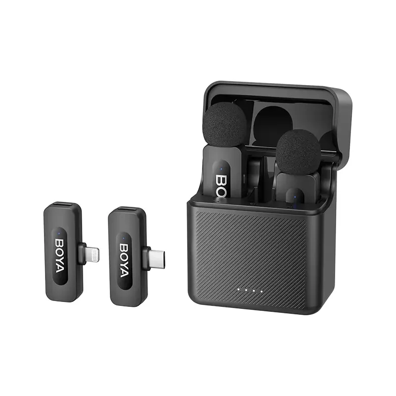 The BY-V3 series is an upgraded dual-channel wireless microphone. Lightweight and portable, it comes with a charging case for all-day battery life. Featuring smart noise cancellation technology, it delivers clear and pure audio. With automatic pairing and plug-and-play functionality, its perfect for daily content creation, news interviews, and remote discussions.