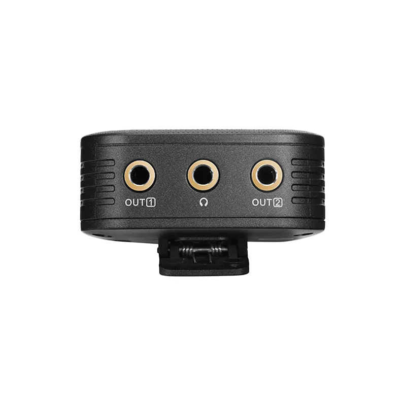 - The receiver has a 3.5mm headphone output for real-time monitoring, and two 3.5mm audio output jacks that can output up to four separate signals at the same time.