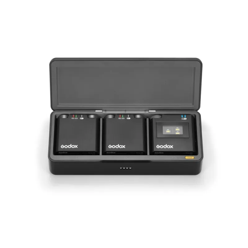 The system offers extended battery life, with up to 13 hours of operation for the transmitter and 17 hours for the receiver on a single charge. The standard version of the Virso M2 package also comes with a charging case for charging on the go, ideal for shooting on location with limited access to power outlets.