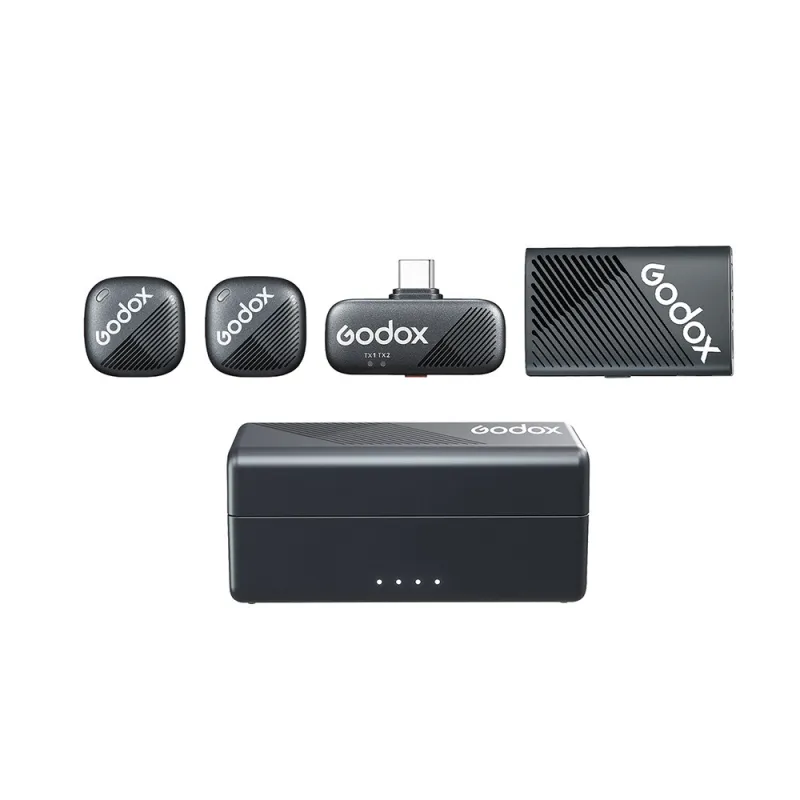 Susipažinkite su Godox Cube-C Combo Kit2 2.4GHz belaidžio mikrofono sistema, galinga ir kompaktiška sistema su itin lengvais mikrofonais. Universalus naudoti su kameromis, stalais ir mobiliaisiais įrenginiais, šis ultra-kompaktiškas rinkinys siūlo 24-bitų garso kokybę, saugumo atsarginę kopiją, 40 valandų baterijos veikimo laiką ir stabilų perdavimą iki 300 metrų. Puikus pasirinkimas skaitmeniniams kūrėjams, vaizdo operatoriams, interviu vedėjams ir tiesioginėms transliacijoms.