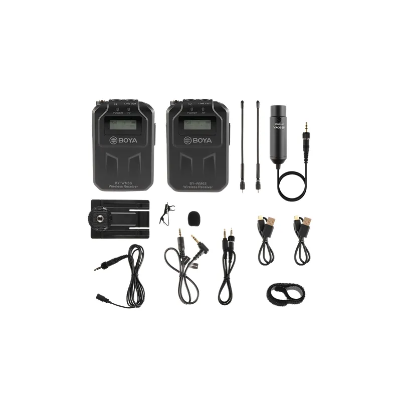 The BOYA BY-WM6S is a new generation UHF wireless microphone system, compatible with smartphone, tablet, DSLR camera, camcorder,audio recorder and more.