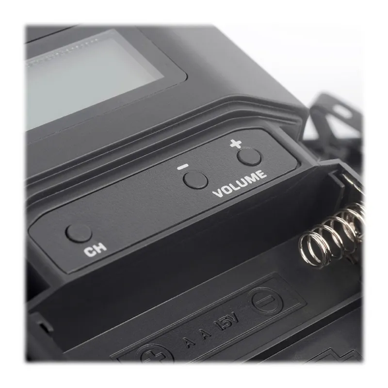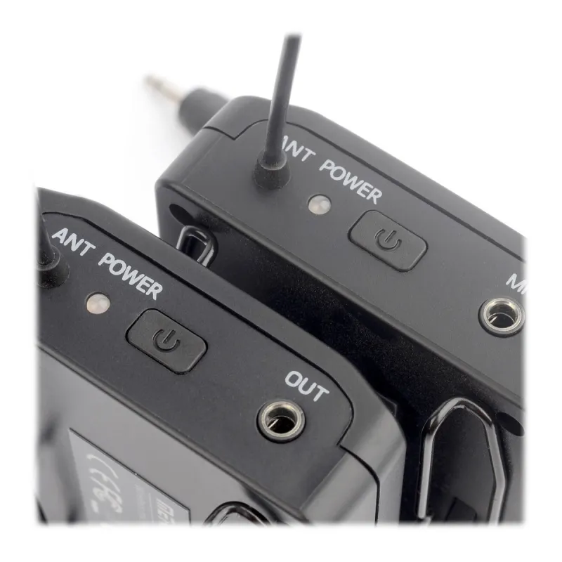 Attach the receiver to the shoe-mount of your camera and instantly synchronize the recorded sound to your camera. Clip the transmitter and receiver to your belt using the clips on the back. The LCD on the transmitter and receiver shows you the remaining battery capacity or which channel you are working on.
