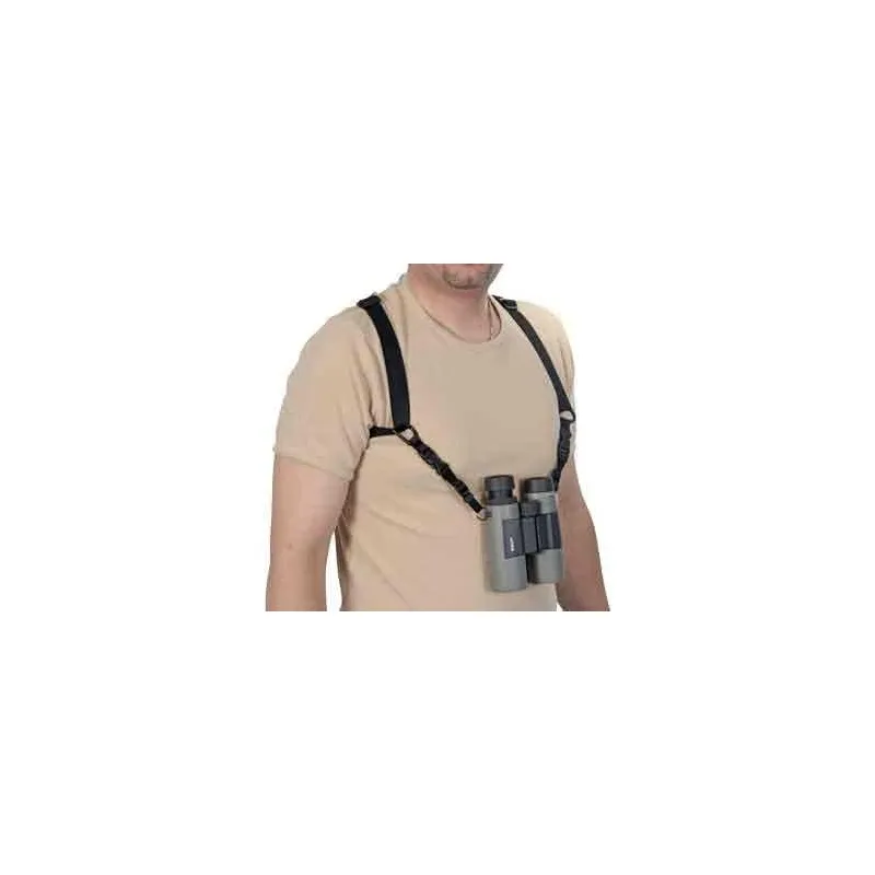 This is a comfortable solution for carrying your binoculars without any effort for hours. This binoculars harness spreads the weight of your binoculars evenly over your shoulders, this ensures a very relaxing view experience. This ingenious and sturdy belt ensures that your binoculars, range finder or camera won't dangle on your belly, while you keep your hands free. With the two quick releases you can quickly release or attach your binoculars to the harness. The durable nylon belt is elastic (one-size-fits-all) and easy to attach. The slides are adjustable so you can easily set the binoculars to the correct viewing position. The carrying system is designed for people who like to hike, ride a bike, ski, ride horseback, mountain bike, etc.