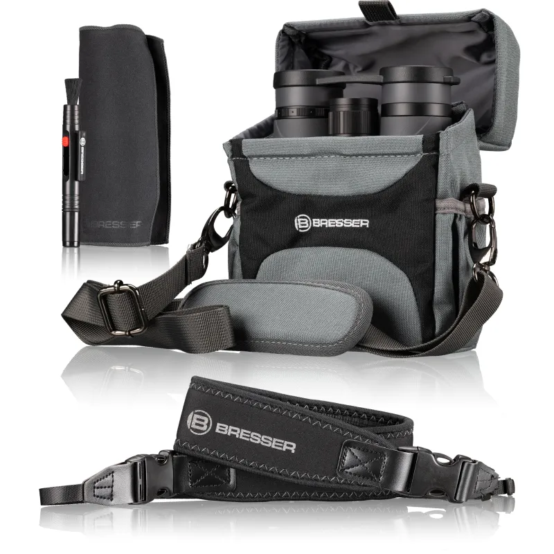 - Scope of delivery: Binoculars, pouch, carrying strap, lens and eyepiece caps, cloth, instruction manual
