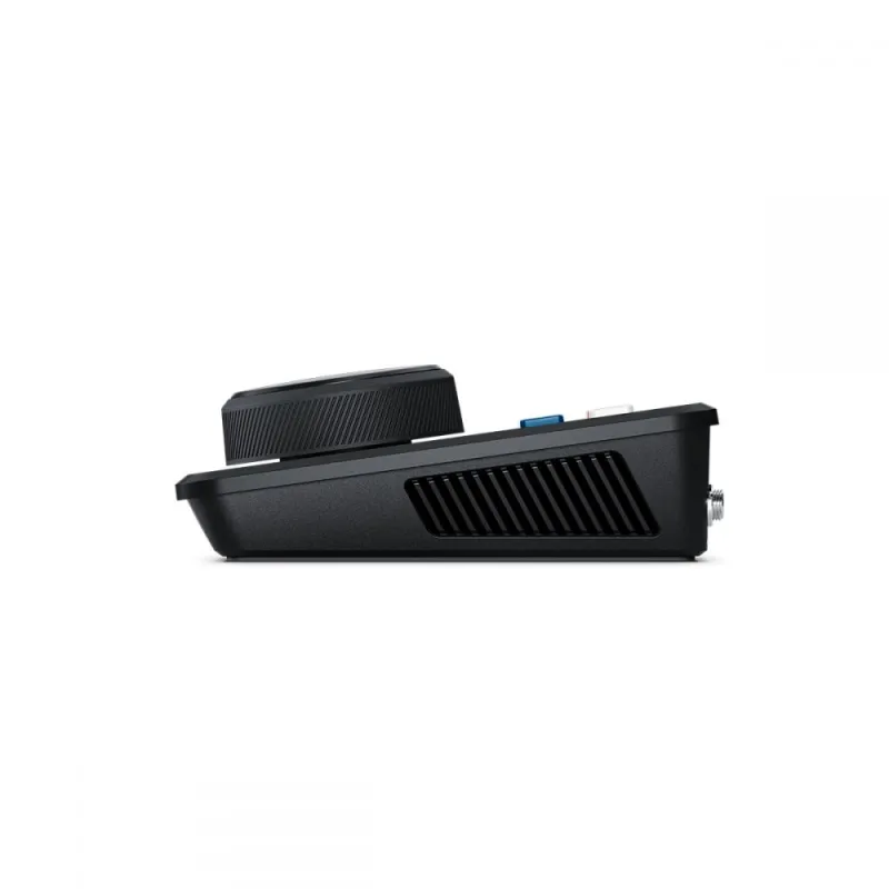 HyperDeck Shuttle HD is perfectly designed for the desktop. This means the front panel can be operated with a single hand! The gentle angle allows your hand to rest on the search dial, and the control buttons are positioned under your fingertips. The design is the same depth and angle as ATEM Mini Extreme, so they match perfectly when used together! Scrolling media is fast as the machined metal search dial has a natural inertia, and the soft rubber surface feels nice to the touch. That's perfect when you're searching through lots of media. Plus, the buttons are the same design as traditional broadcast decks. The rear panel includes all video, power, network and control connections.