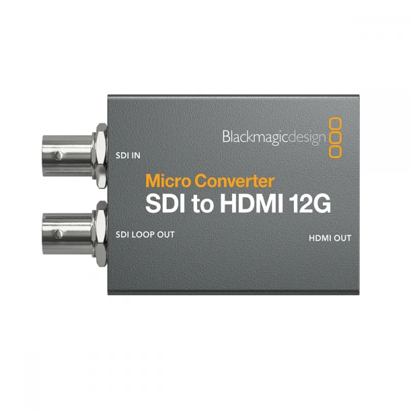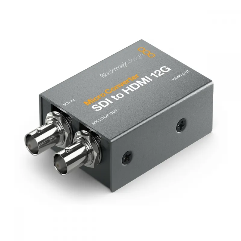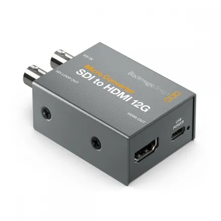 Mažiausias pasaulyje 12G-SDI į HDMI konverteris transliacijos kokybe. Blackmagic Micro Converter SDI į HDMI 12G yra mažas vaizdo konverteris, skirtas profesionaliam stebėjimui. Jame yra 33-Point-3d-LUT spalvų kalibravimui monitoriams, projektoriams ar televizoriams. Konverteris veikia visose NTSC, PAL, 720p, 1080p, 1080i ir 2160p normose, įskaitant 4kp24/47.95/48 DCI. Galima maitinti per USB prievadą iš nešiojamųjų kompiuterių ar mobiliųjų telefonų akumuliatorių.