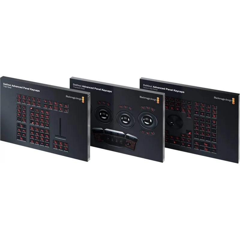 The DaVinci Advanced Panel Keycaps from Blackmagic Design provides users with replacement keycaps for the DaVinci Resolve Advanced Panels for Resolve Version 17. This set includes keycaps for each of the three panels, which are the trackball panel, the T-bar panel, and the Search Dial panel.