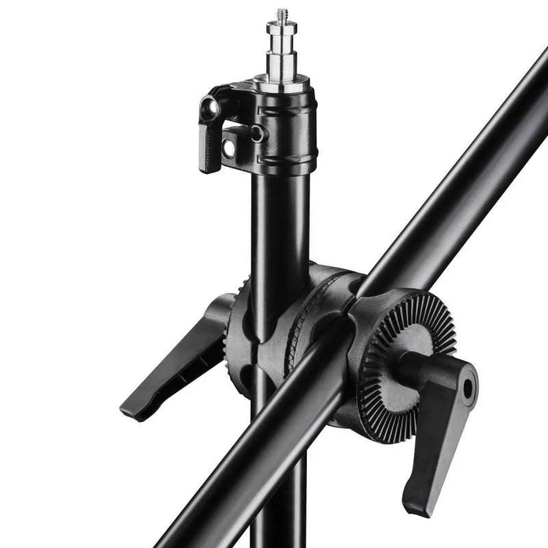 The walimex pro WT-501 Boom Stand is a low priced solution for setting highlights or generally for illumination from above. It adds another dimension to the margin of illumination of your studio flashguns. Flashguns can be extended in two sections on the boom arm up to a length of 210cm, and at the same time are kept in balance by a 4350g heavy counterweight. With the standard spigot connection 5/8 inch the studio stand is suitable for all common studio flashguns.