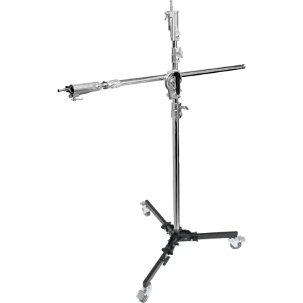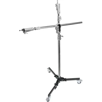 The height of the sliding arm can be quickly adjusted with only one hand from floor level to the top of the column. The fold-away base with wheels can be easily removed to facilitate storage or transport.
