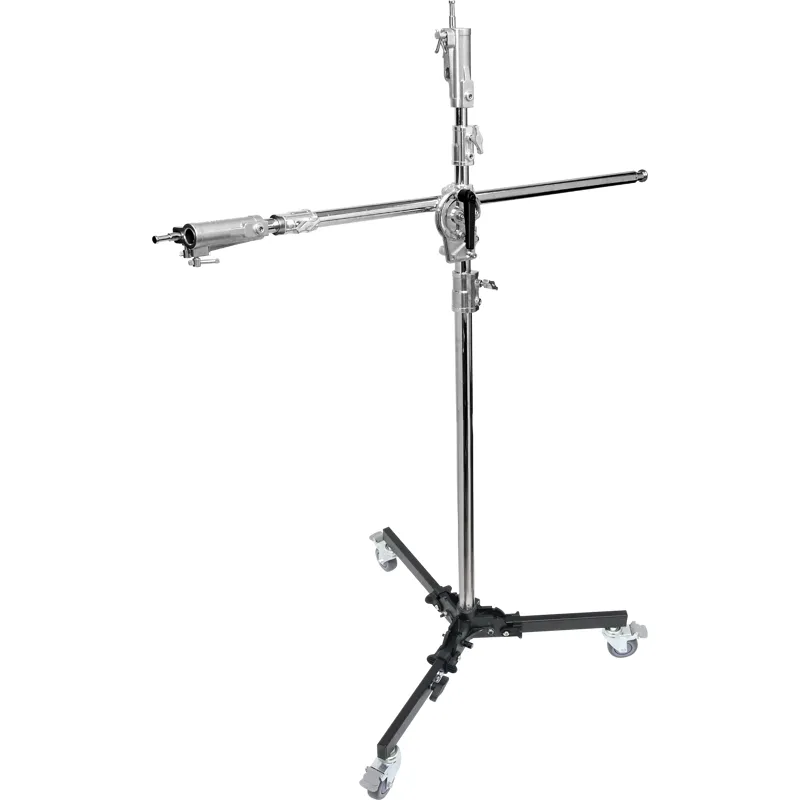 Supports up to 30 kg and features a chrome-plated steel tube and a spring-loaded sliding arm which can be mounted with a lighting fixture or anything with a baby pin/receiver.