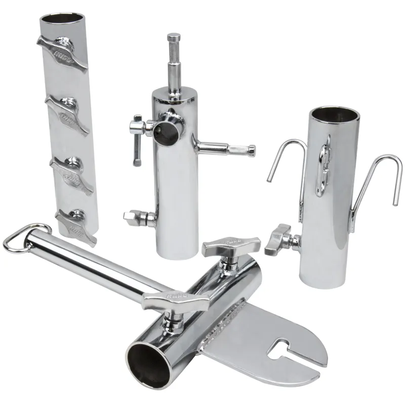 The joint pipe adapter features dual knobs for safely mounting while connecting the pipe from two sides. It includes a unique captive locking knob that prevents the knob from coming off even if completely unscrewed. Additionally, a safety wire with a linchpin is attached for an extra level of security.
