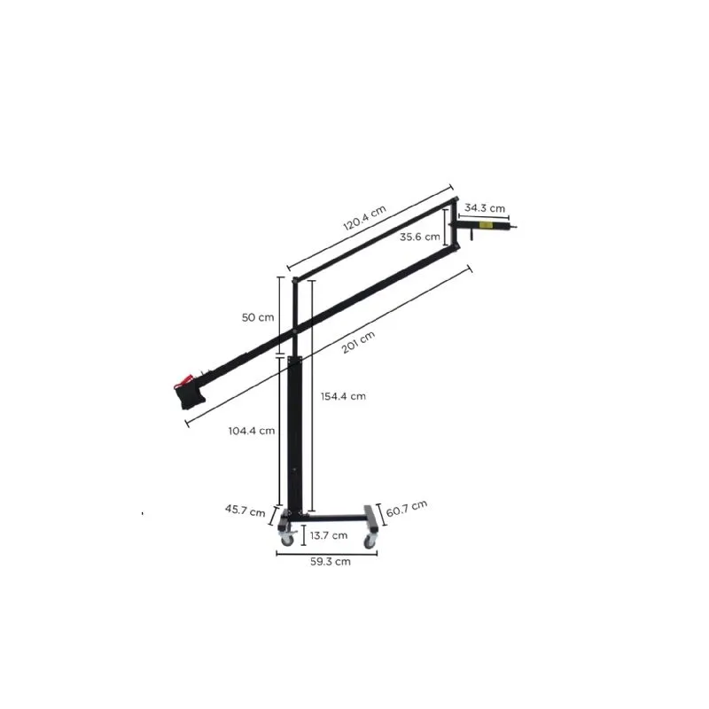 ;For a good equilibrium it's important to have a counterbalance when a light is attached. The Light Boom comes with two weight bags of 4.5 kg each. To keep te Boom Light on it's place, you can click the brakes onto the wheels. For a detailed summary of all the sizes, please see the 2nd picture of this product.