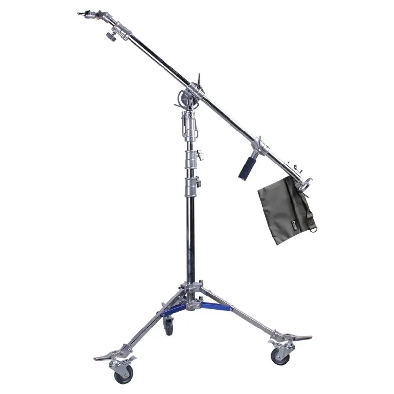 Equipped with an integrated stroller that allows easy movement around the studio. Specification: Maximum height: 226 cm Length after folding: 150 cm boom length: 260 cm pipe diameter: 30.35.40.45 mm Leg size: 25 x 25mm Weight: 19.2 kg Load: 30 kg
