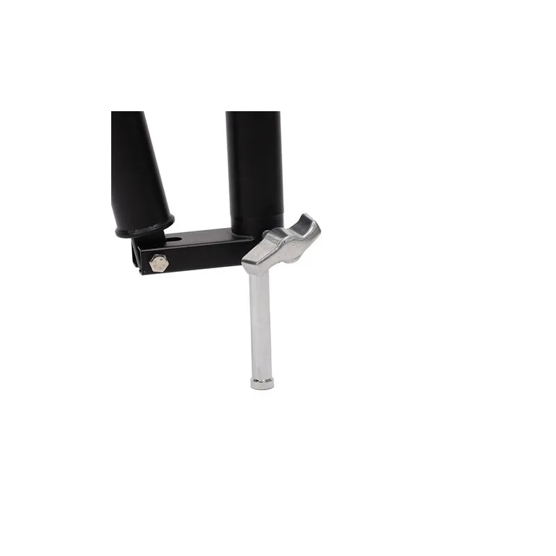 The FPT-2100B from StudioKing is a professional boom arm with universal spigot. The boom arm forms one unit with the tripod. The special base and construction of the FPT-2100B make it possible to attach an object (e.g. a lamp or microphone) in almost any position, without the boom arm becoming unbalanced. For example, you can extend the boom arm horizontally to as much as 250 cm and attach the lamp/microphone to the end. Instead of horizontally, you can also move the boom arm diagonally up or down. If you place the FPT-2100B on an elevation, the spigot of the boom arm can even be positioned lower than the bottom of the tripod (see third photo). The maximum load capacity is 10 kg.