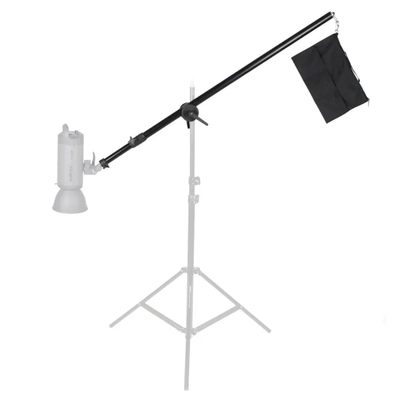 Whether right-angled or as a tripod, this multifunctional boom arm handles even difficult lighting situations easily 3 sections cross boom arm with telscopic extension up to 3 Kg Right- angled and can be used as a tripod 2 Padded handles and spigot connection Height 79 cm to 245 cm/ Diameter 25/28 mm/ Weight 1160 g Aluminium boom arm and counterweight bag