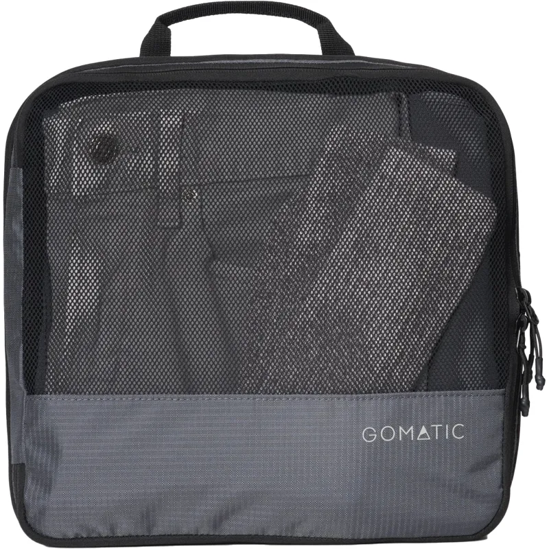 Pack more efficiently with the large Gomatic Packing Cube. The cube measures 11.5 long by 11.5 wide. It has a 5 depth that can be condensed by 50% using the reliable wraparound zipper compression system. The cube is made from lightweight ripstop nylon and has a mesh front panel so you can see whats inside.