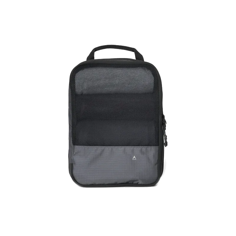 The cube measures 11.5 long by 7.75 wide. It has a 5 depth that can be condensed by 50% using the reliable wraparound zipper compression system. The cube is made from lightweight ripstop nylon and has a mesh front panel so you can see whats inside.