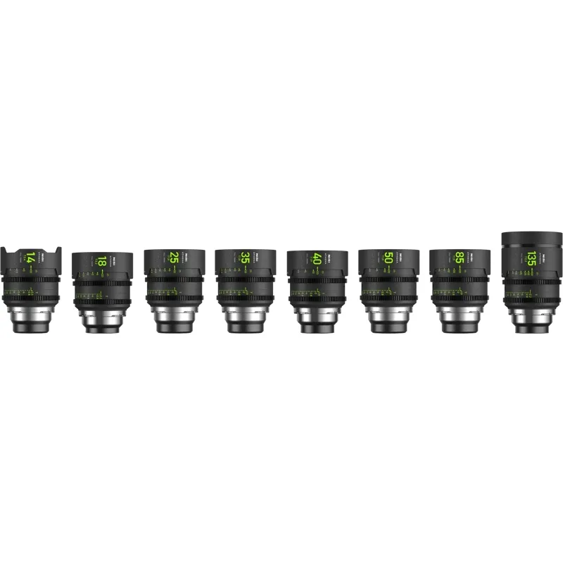 The NiSi Athena Cine Lenses set includes 8 lenses with focal lengths ranging from 14mm to 135mm, offering versatility for various shooting scenarios and subjects. The lenses have a T-stop rating for consistent exposure and a 46mm image circle suitable for full-frame and large-format sensors.