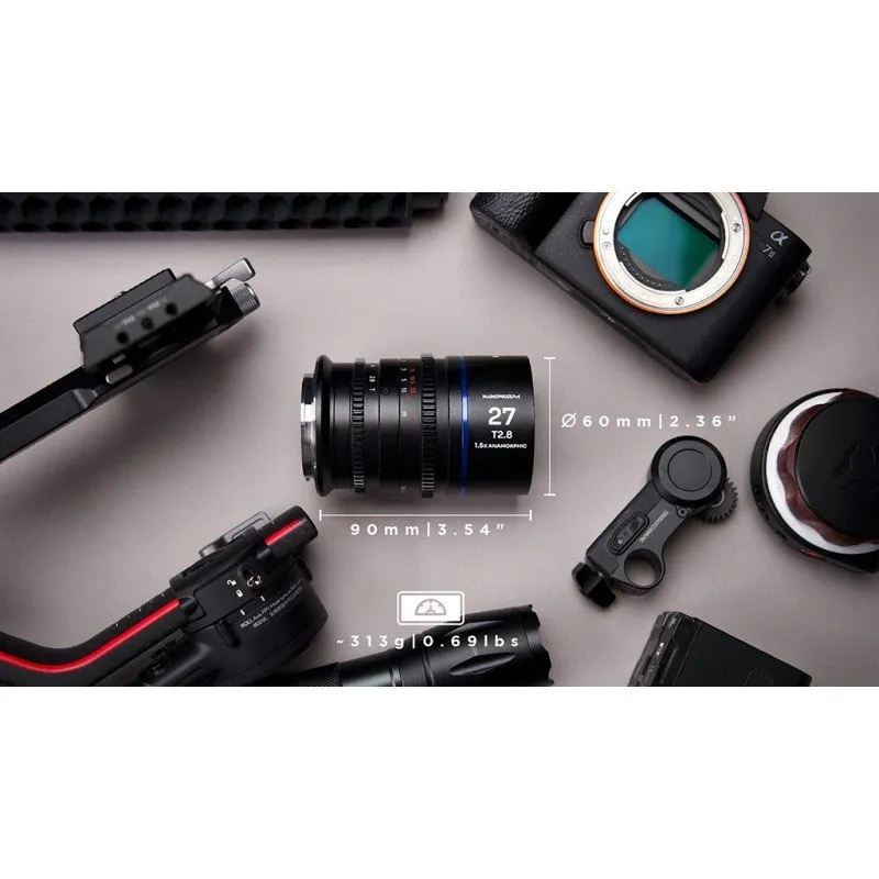 The name Nanomorph is no accident. The designers at Venus Optics Laowa have created the world’s smallest line of anamorphic lenses. No more heavy and bulky devices. The Venus Optics Laowa Nanomorph 27 mm T2.8 1.5X S35 Silver for Sony E weighs just 313 grams. Its length is 9 cm. Such a performance will not only work successfully when filming from a tripod and handheld, but also in combination with gimbals, sliders and drones.