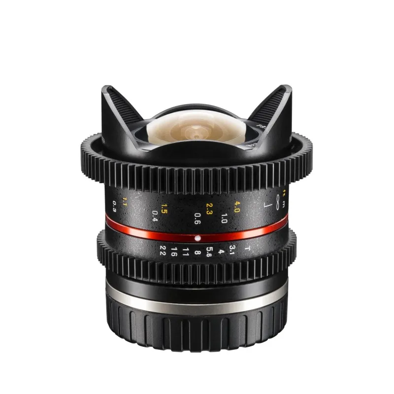 With the walimex pro 8/3,1 Fisheye VDSLR your are well equipped for videography as well as photography, without time consuming changing of lenses. The aperture can be infinitely adjusted, which minimizes transitions in exposure time. Both the aperture ring and the focus ring are provided with a gear rim and have thus been optimized for use with focussing facilities (Follow Focus Systems). Lens for APS cameras!
