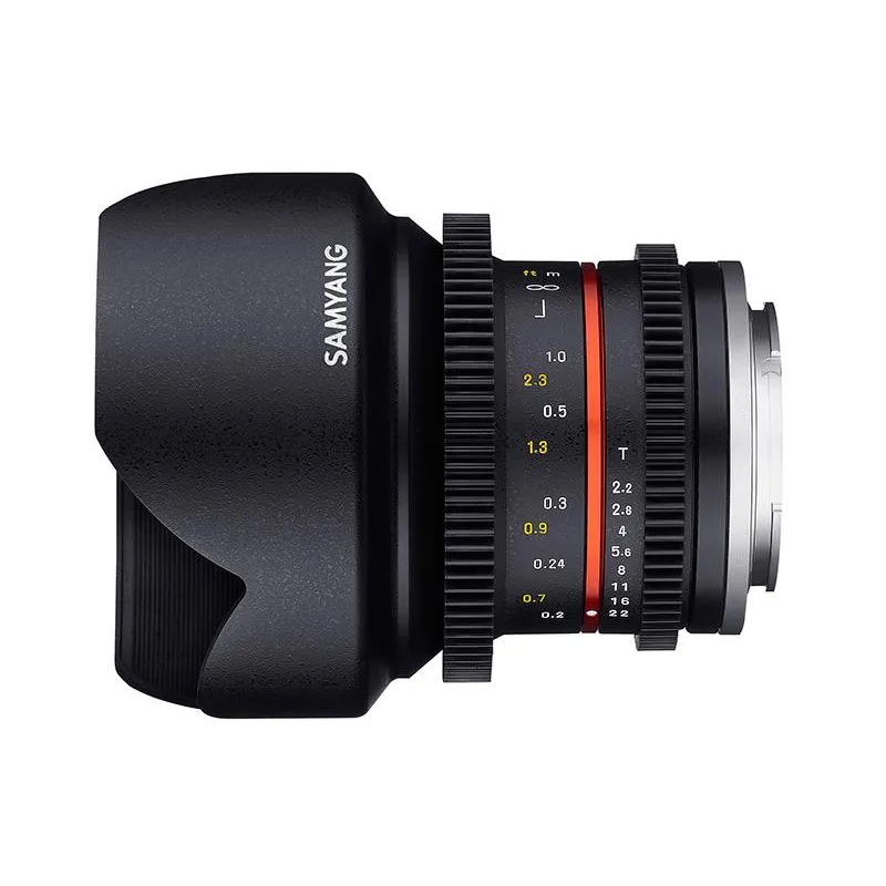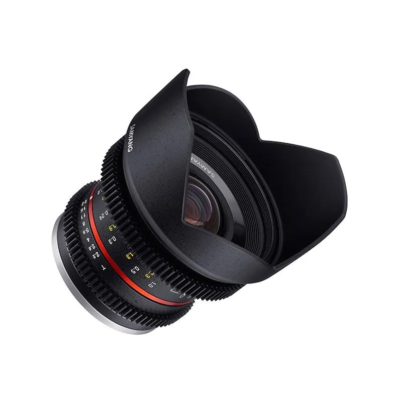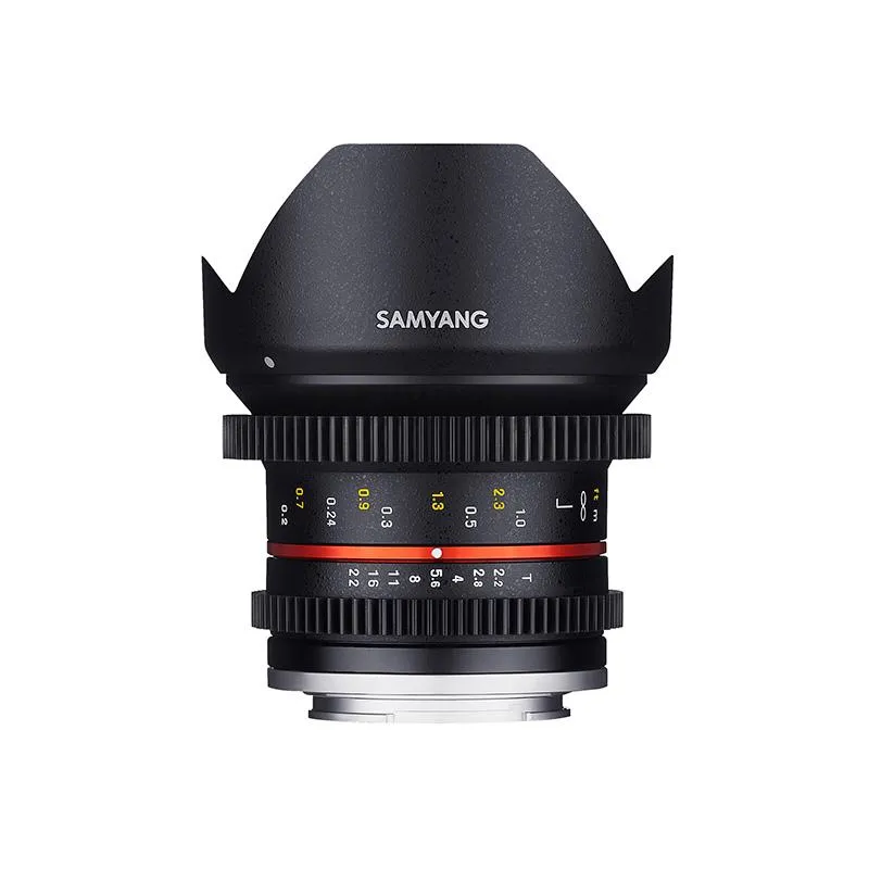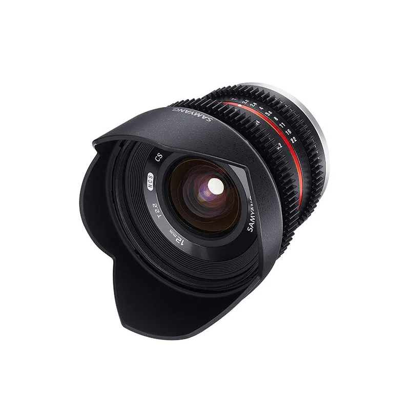Samyang 12mm T2.2 Cine NCS CS lens is a wide-angle mirrorless video lens designed for APS-C crop sensors.