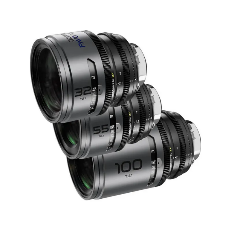 The DZOFILM Pavo 2x Anamorphic 3-Lens Kit (32mm, 55mm, 100mm) is designed for PL/EF mount Super35 cameras, offering cinematic 2x anamorphic visuals and exceptional low-light performance. This kit is perfect for filmmakers aiming for stunning widescreen aesthetics.