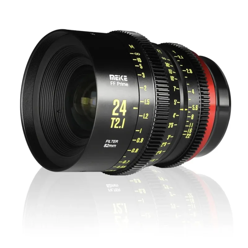 The Meike 24mm T2.1 lens from the FF-Prime Cine Series has a 45mm circular diameter, is compatible with all FF cameras and comes in PL/EF/RF/E/L mount options. This makes it compatible with Sony, Panasonic, Canon, Sigma and Leica DSLM cameras equipped with FF/Super 35/APS-C size sensors and Canon C700, Sony Venice, Alexa LF, Z Cam E2-F6, Mavo LF, etc. Of course, standard M0.8mm focus ring gear and side focus aperture are standard. Thefull planned FF-Prime Cine line will offer 16mm T2,1, 24mm T2,1, 35mm T2,1, 50mm T2,1, 85mm T2,1, 105mm T2,1 and 135mm T2,1 models.