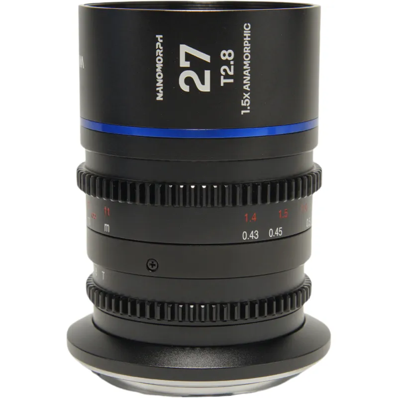With a fast T2.8 aperture, the Laowa Nanomorph 27mm lens offers filmmakers excellent depth of field control even in low light. Its precise anamorphic optics ensure sharp details and minimal focus breathing. The compact design makes it ideal for handheld use, gimbals, and drones, while the standard 0.8 mod focus and aperture rings allow seamless integration with professional follow-focus systems. Available in various flare options, including blue, amber, and neutral, it enables filmmakers to customize their visual style.