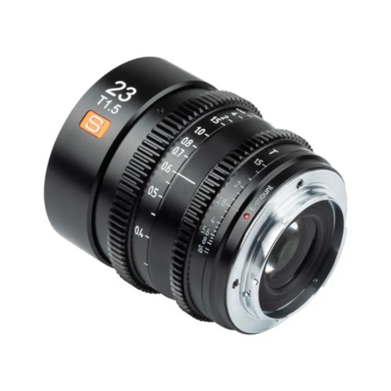 Equipped with a fast T1.5 aperture, the Sony E-mount Viltrox 23mm T1.5 Cine Lens offers cine-style coverage for S35/APS-C-sized sensor cameras even in low light levels. Multilayer coatings, a solid build, 0.8-MOD cine-style gearing, and a 14-blade aperture for smooth bokeh round out the attributes of this compact lens.