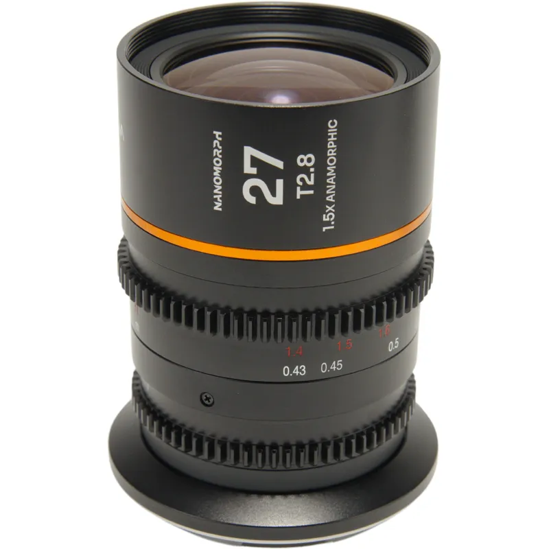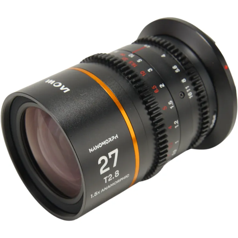 With a fast T2.8 aperture, the Laowa Nanomorph 27mm lens offers filmmakers excellent depth of field control even in low light. Its precise anamorphic optics ensure sharp details and minimal focus breathing. The compact design makes it ideal for handheld use, gimbals, and drones, while the standard 0.8 mod focus and aperture rings allow seamless integration with professional follow-focus systems. This lens is available in various flare options, including blue, amber, and neutral, enabling filmmakers to customize their visual style.