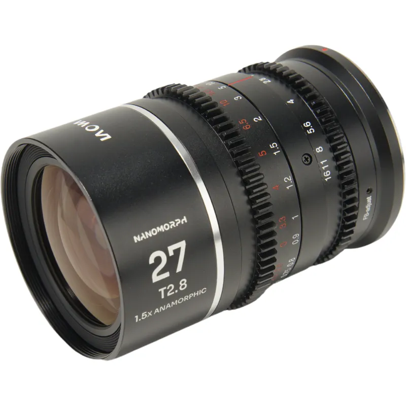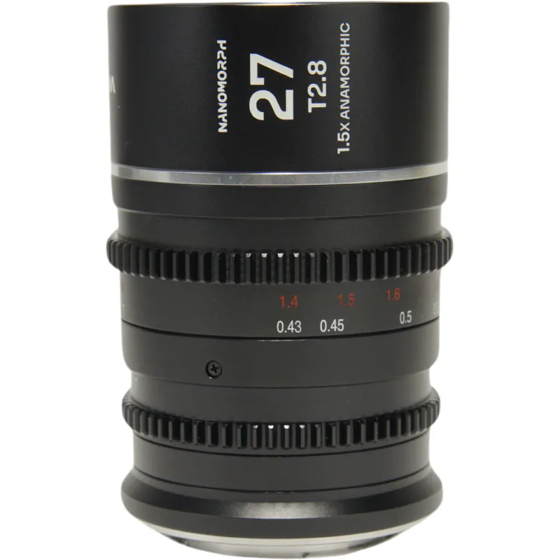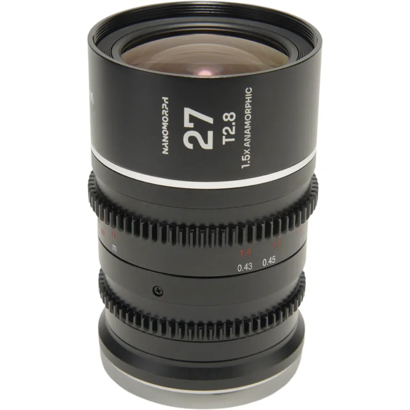 With a fast T2.8 aperture, the Laowa Nanomorph 27mm lens offers filmmakers excellent depth of field control even in low light. Its precise anamorphic optics ensure sharp details and minimal focus breathing. The compact design makes it ideal for handheld use, gimbals, and drones, while the standard 0.8 mod focus and aperture rings allow seamless integration with professional follow-focus systems. Available in various finishes, including blue, amber, and silver, it enables filmmakers to customize their visual style.