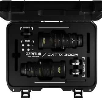 Add two full-frame zoom lenses to your production kit to cover multiple focal lengths and cameras with this Catta 18-35mm & 35-80mm T2.9 E-Mount Cine Zoom 2-Lens Bundle from DZOFilm. The kit includes a black Catta E-mount 18-35mm T2.9 zoom lens, a black Catta E-mount 35-80mm T2.9 zoom lens, two front lens caps, two rear caps, two shim sets, two support bases, and two support rods.