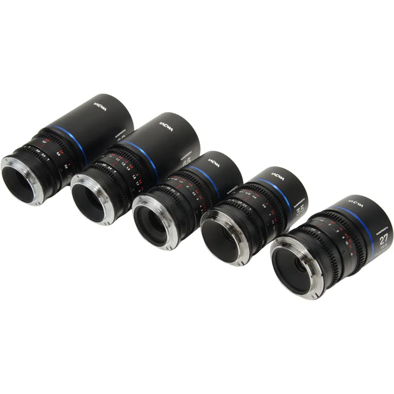 The Laowa Nanomorph S35 Prime lens set includes five versatile lenses, perfect for various shooting scenarios. Below are the details of each lens: