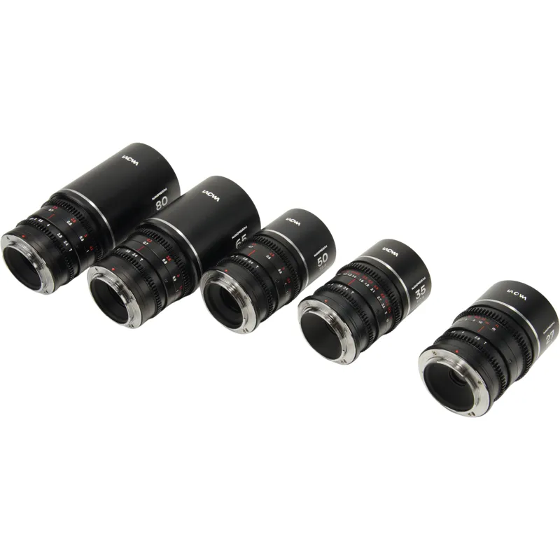 The Laowa Nanomorph S35 Prime lens set includes five versatile lenses, perfect for various shooting scenarios. Below are the details of each lens: