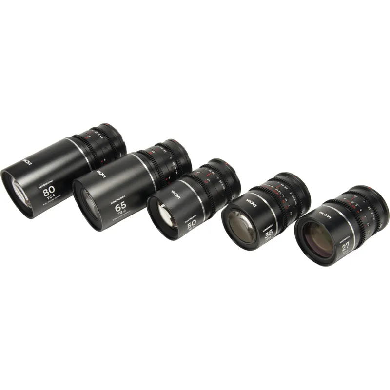 The Laowa Nanomorph S35 Prime lens set includes five high-quality lenses designed for professional cinematography. Below are the details of each lens: