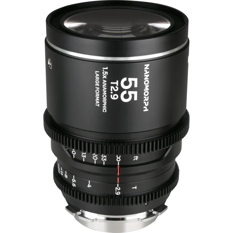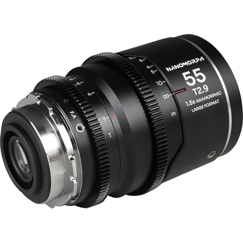 The optical design of the Nanomorph LF 55mm is meticulously crafted with advanced glass elements to maximize sharpness, maintain color accuracy, and control distortion and chromatic aberrations, providing consistent anamorphic quality and exceptional image rendition throughout the frame.