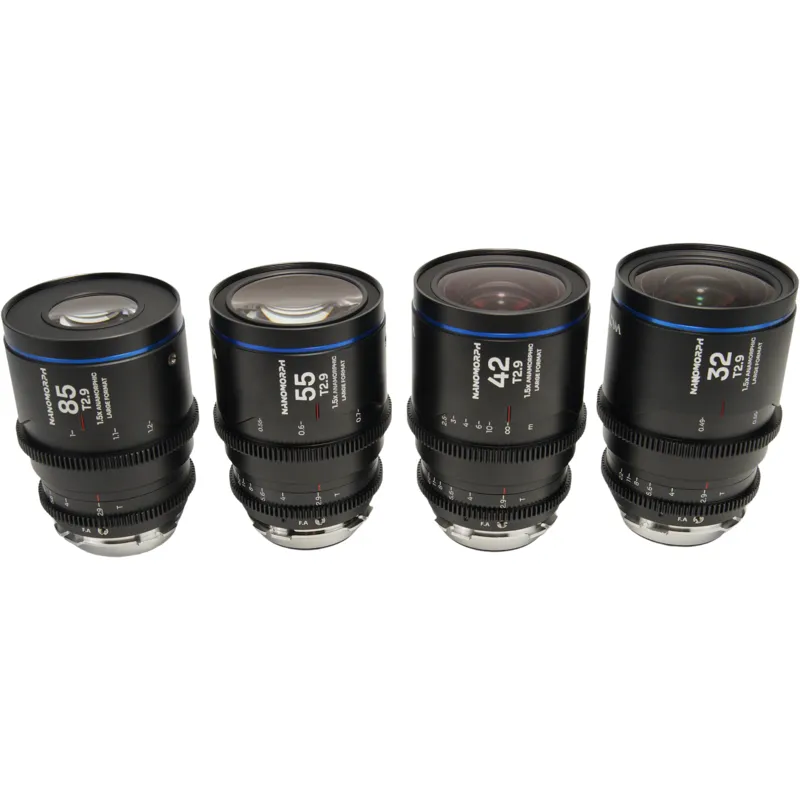 Set Includes: 32mm, 42mm, 55mm, and 85mm lenses in blue - compatible with Arri PL/Canon EF.